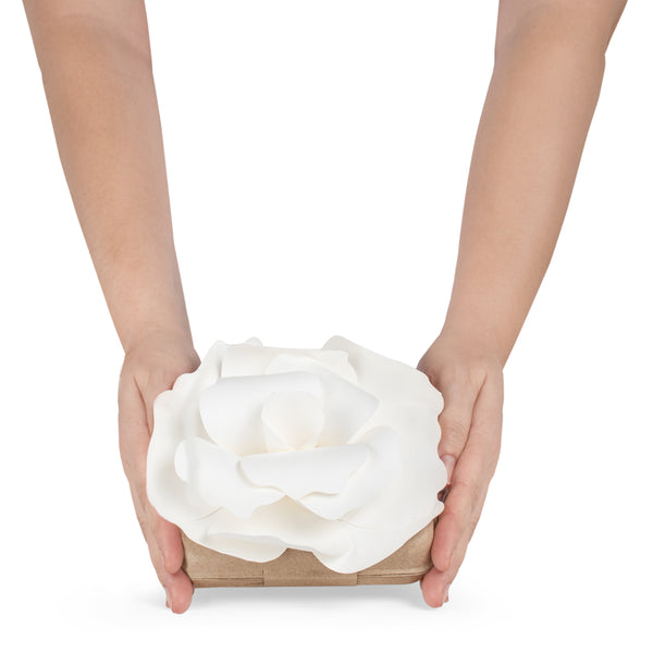 The white rose design symbolizes the beauty of life and serves as a bridge between this life and the next chapter.